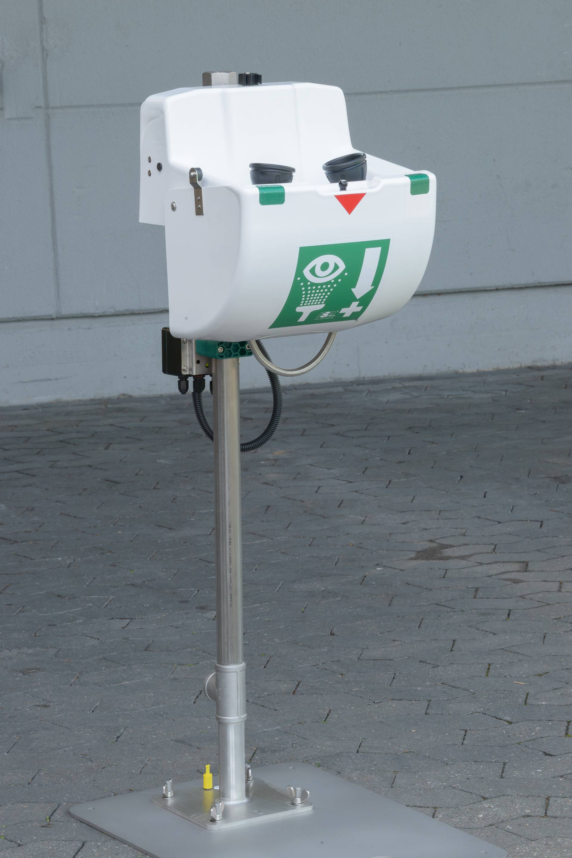- Directe activering – Zodra de afdekkap wordt geopend, start de oogdouche automatisch. Geen knoppen of kranen nodig.